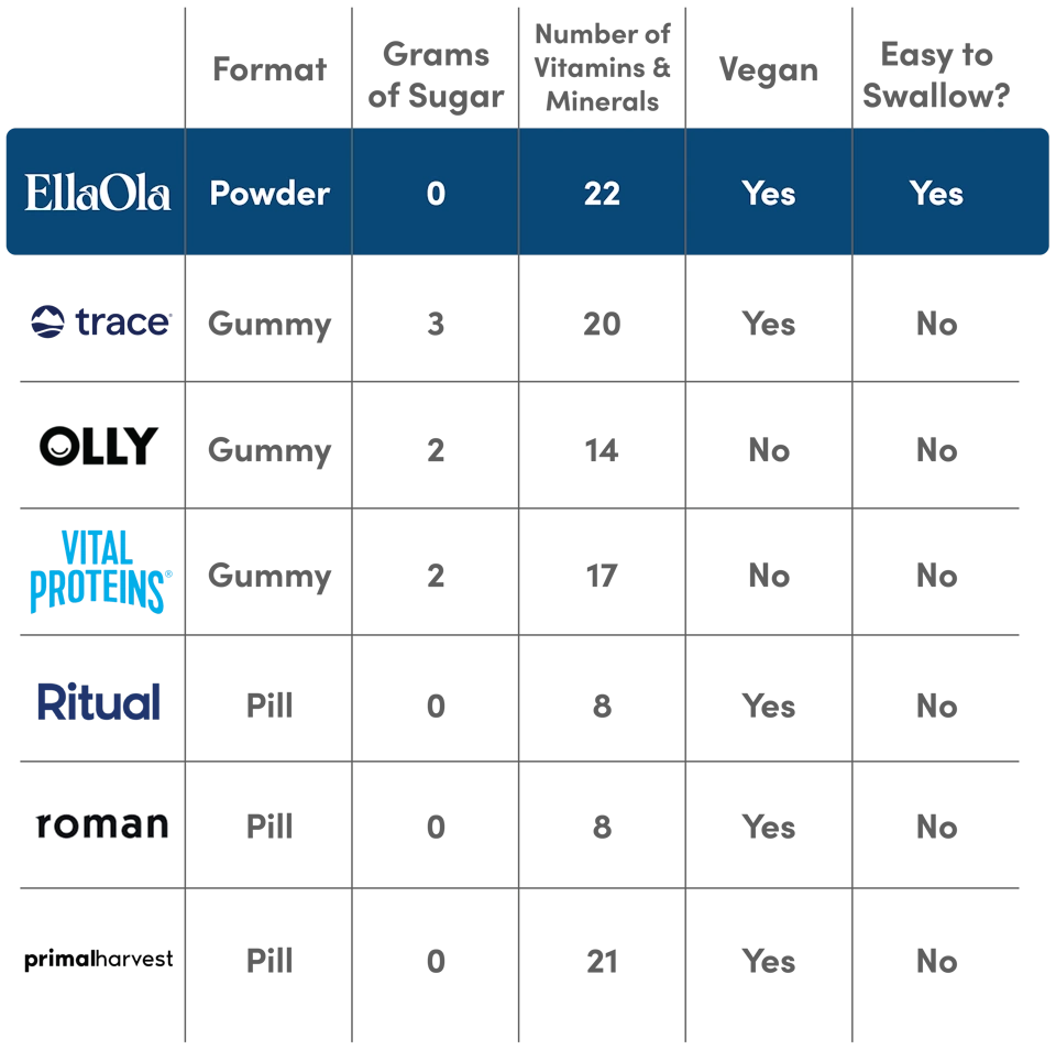 Each carefully selected vitamin and mineral in our Daily Multivitamin Powder is purposely crafted to support your health and vitality. Discover your full potential with EllaOla.